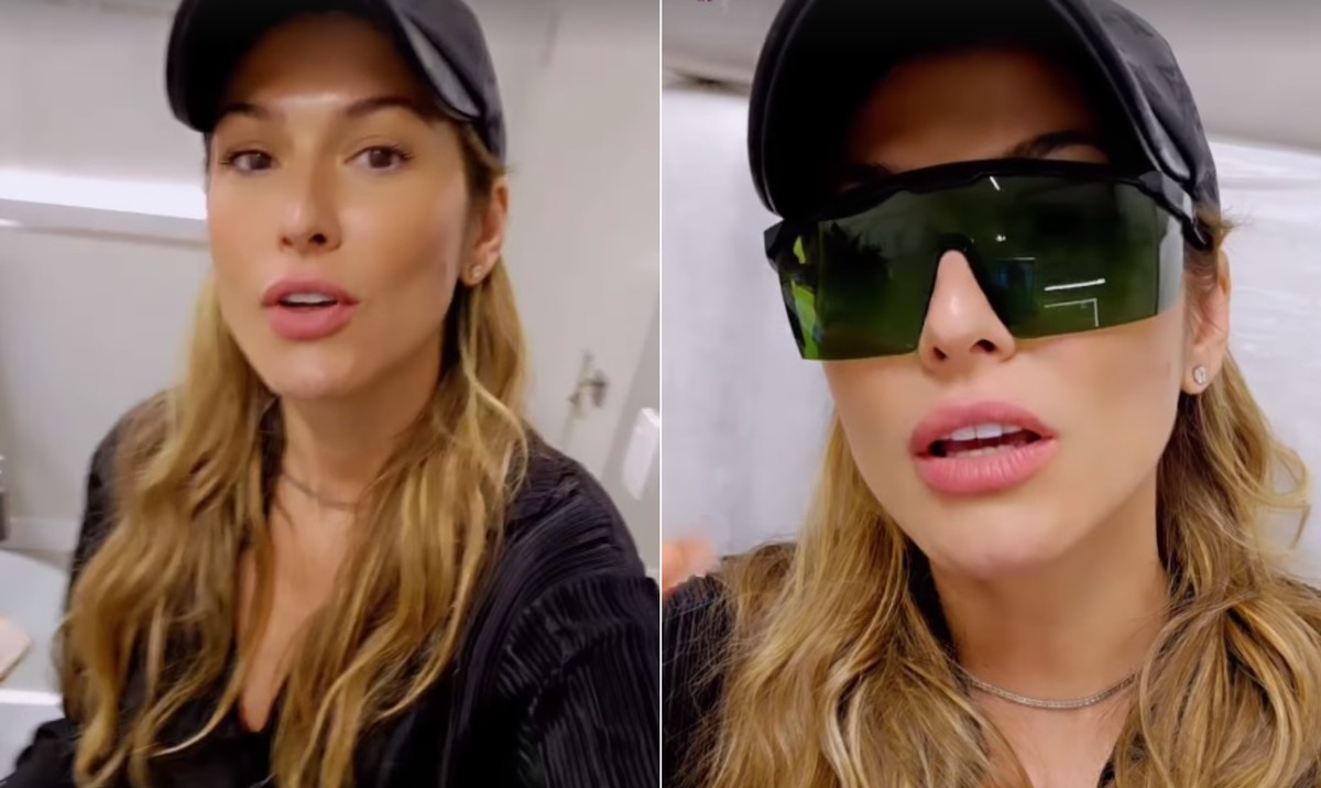Em seguida, a apresentadora e comentarista do “Domingão com Huck” aparece usando um óculo de proteção e fala sobre o procedimento realizado com sua ginecologista, Fernanda Barroso: