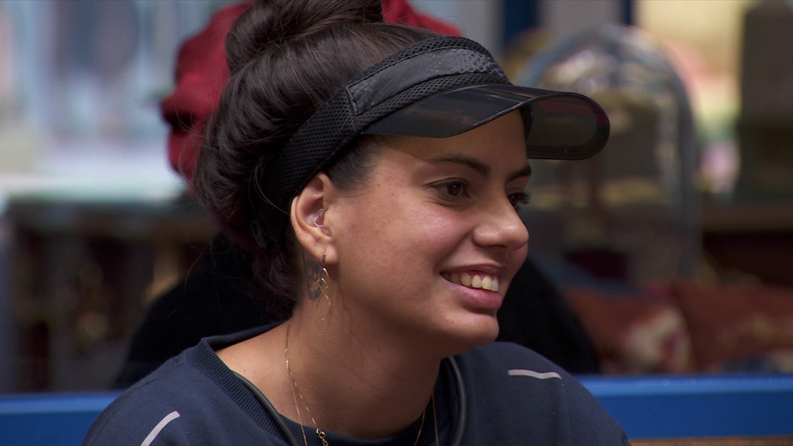 Fernanda continua o papo com Pitel, Giovanna e MC Bin Laden, que estão ao seu lado na sala. A confeiteira, que está no Paredão formado na noite de sexta-feira, afirma que a música está em sua playlist e declama a letra.