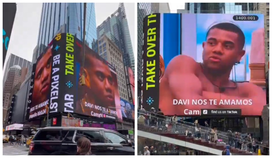Após vencer o BBB 24 com 60,52% da média de votos do público, Davi ganhou uma homenagem de seus fãs na Times Square, um dos principais destinos de quem visita Nova York. Os telões do local são famosos por seus anúncios iluminados, e momentos do motorista de aplicativo no reality foram escolhidos pelos fãs do ex-brother para estamparem a homenagem.