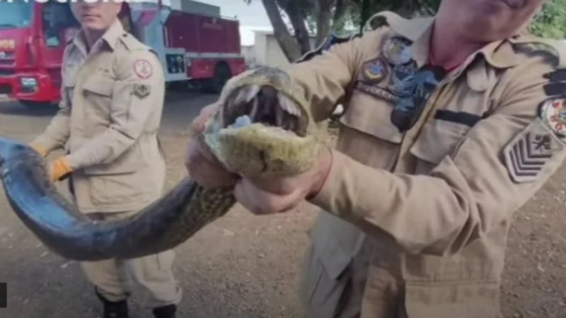 “Aqui é comum aparecer cobras nessa época, principalmente, por causa das chuvas, mas uma cobra desse tamanho, não é comum. Essa deve ter vindo do rio, que é bem perto de onde ela apareceu”, contou a mulher.
