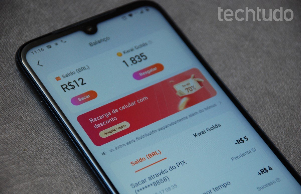 Assim como no caso anterior, existem algumas condições para ganhar dinheiro dessa maneira. Você deve assistir a, no mínimo, três minutos de vídeos por três dias seguidos, sem pausar a reprodução ou repetir o mesmo conteúdo. Ao fazer isso, você ganha Kwai Golds, que são as moedas virtuais que a plataforma dá para os usuários como forma de recompensa — e, depois, você pode trocá-las por dinheiro de verdade ou recarga de celular. 10 mil Kwai Golds equivalem a R$ 1,00.