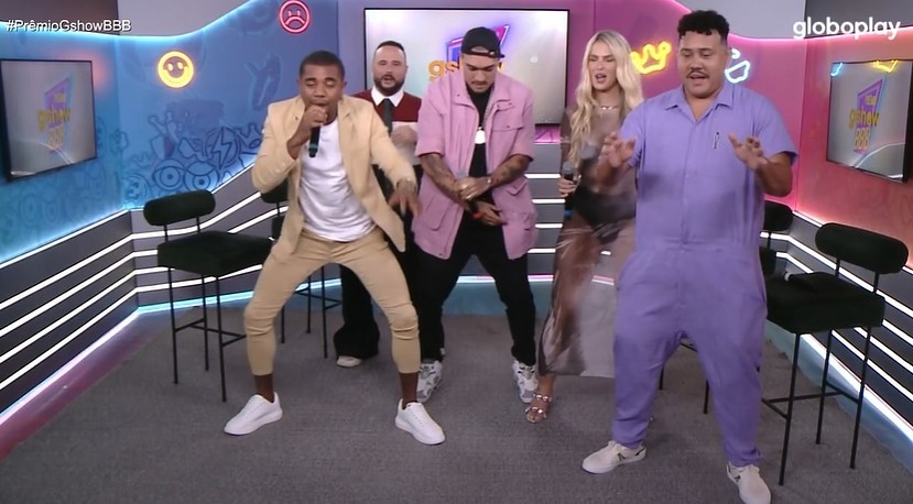 No Prêmio gshow BBB 24, Davi, MC Binn e Lucas Henrique dançam a música ‘Calma, Calabreso’