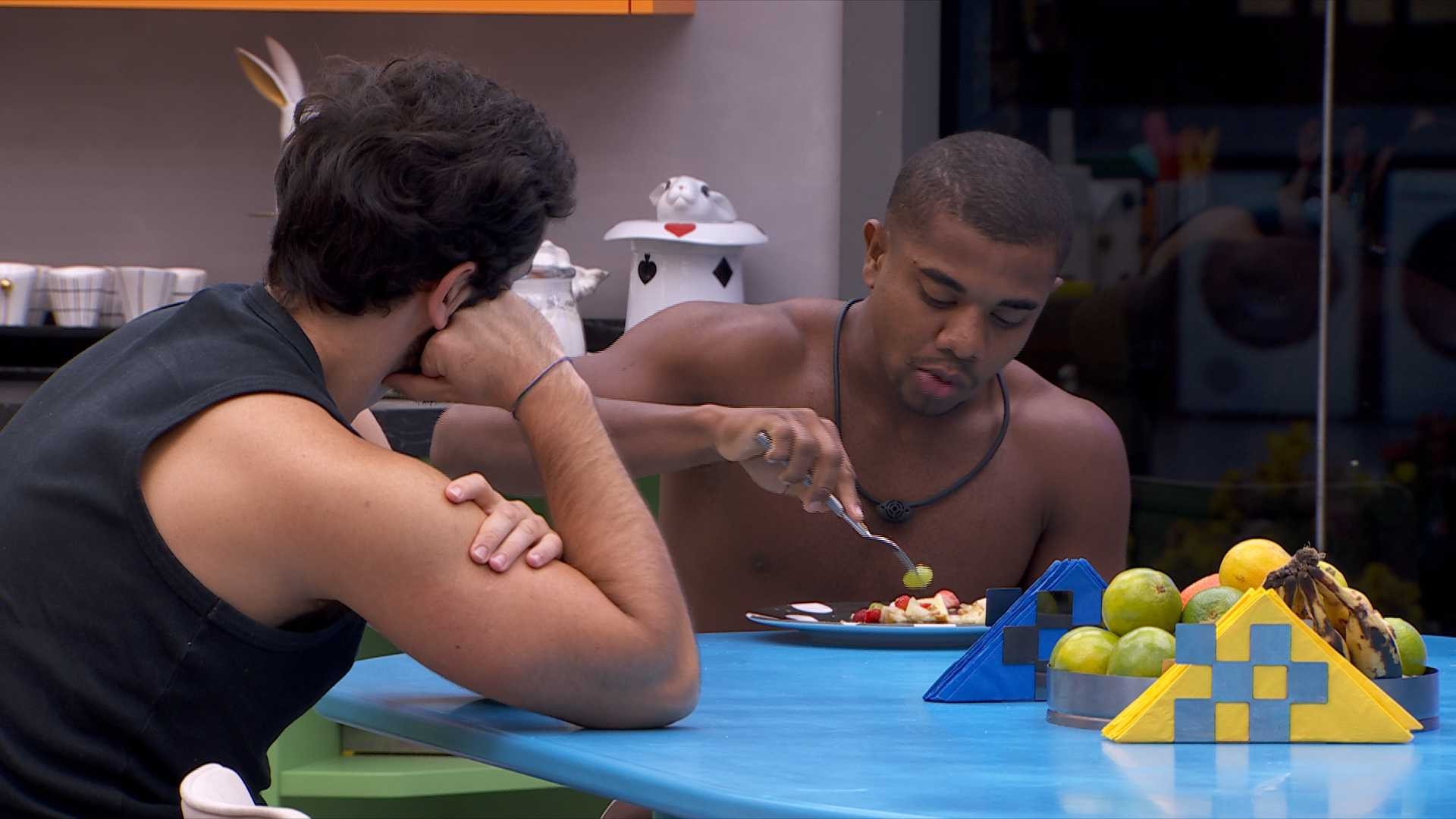 Matteus e Davi conversam na cozinha. Enquanto come uma salada de frutas, o baiano reflete sobre os participantes do Top 4. Ele dá sua avaliação sobre Alane, Isabelle e o gaúcho, que disputam as últimas vagas da grande Final.