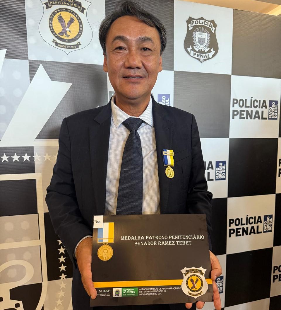 A honraria foi concedida por indicação da Direção da AGEPEN e outorgada pelo Governo do Estado, como forma de reconhecer personalidades que contribuem para o fortalecimento do sistema penitenciário e da segurança pública. A cerimônia de entrega da Medalha Patrono Penitenciário “Senador Ramez Tebet” aconteceu nesta sexta-feira (05), no auditório da Universidade Estadual de Mato Grosso do Sul (UEMS), em Campo Grande.