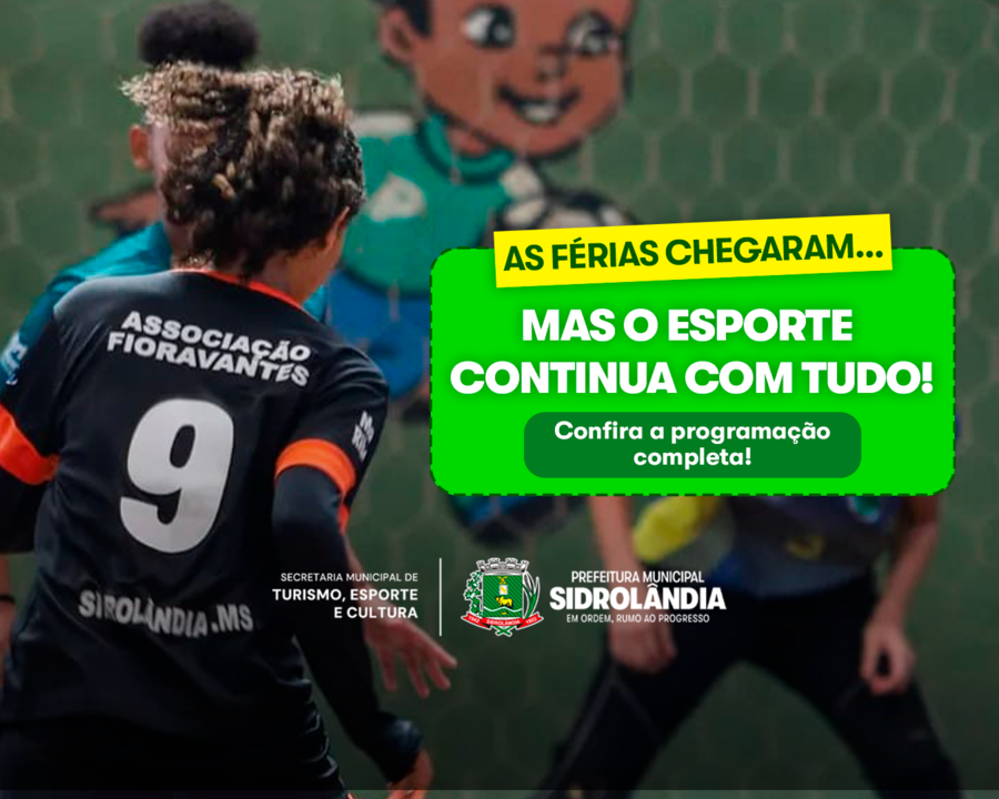 As férias chegaram, mas o esporte em Sidrolândia não para! A Prefeitura Municipal, por meio da Fundação Municipal de Esportes, segue com uma programação ativa de treinos e atividades para crianças, adolescentes e jovens em várias modalidades.