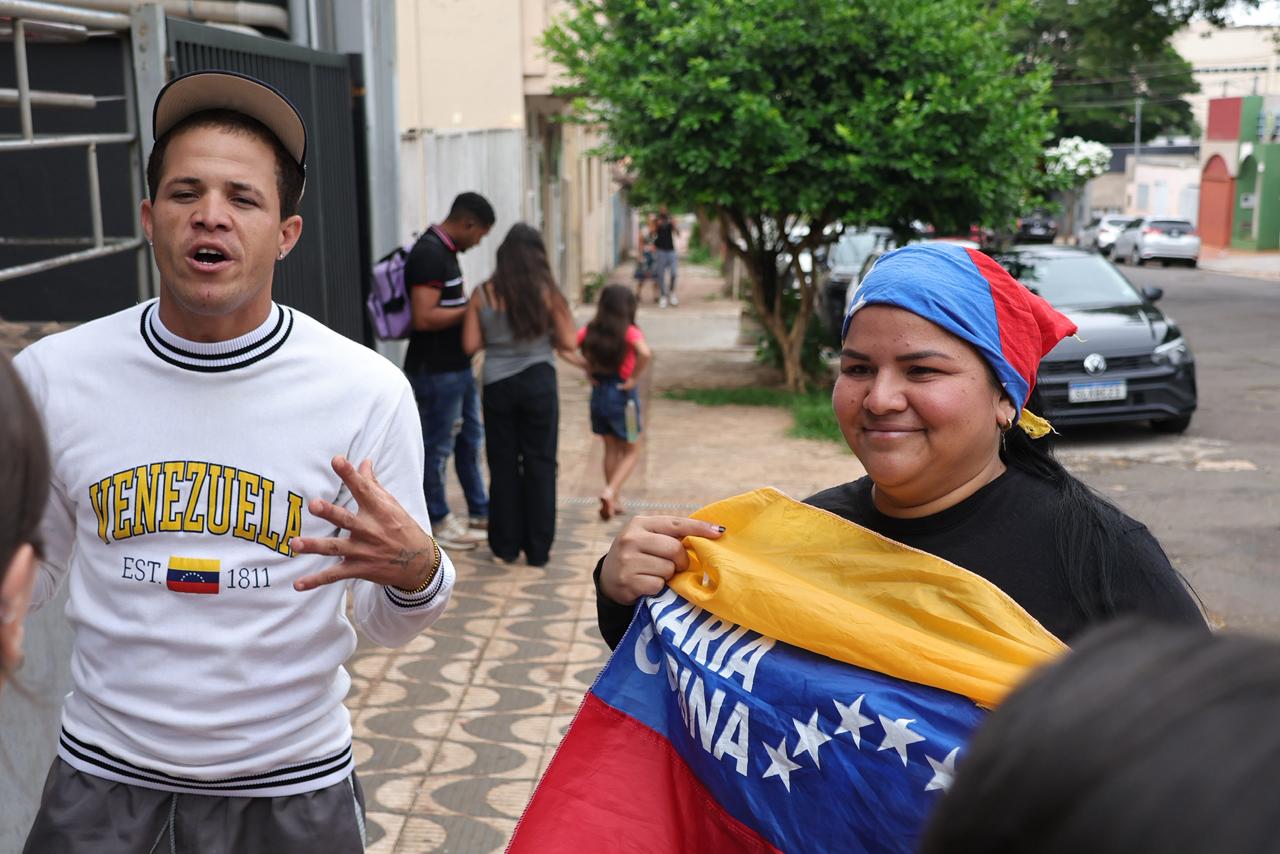 Venezuelanos refugiados em Campo Grande comemoram, na manhã deste sábado (3), a captura do presidente da Venezuela, Nicolás Maduro, feita pelos Estados Unidos.