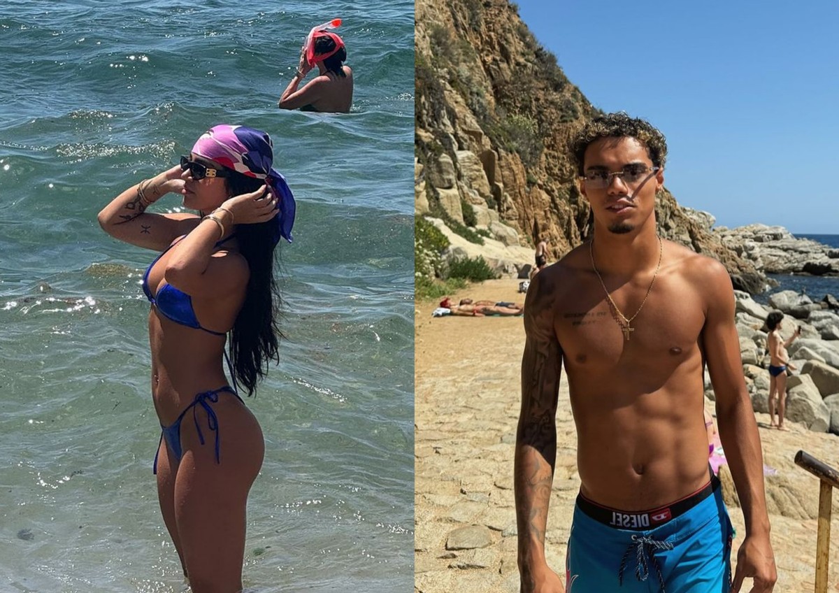 Curtindo dias de praia, João Mendes, filho de Ronaldinho Gaúcho, tem aproveitado a companhia da namorada em Tossa de Mar, um pequeno vilarejo na Costa Brava da Espanha. O atleta, que é jogador na categoria de base do Barcelona, namora a influenciadora Giovanna Buscacio, irmã da atriz Giullia Buscacio, a Sandra de “Renascer”.