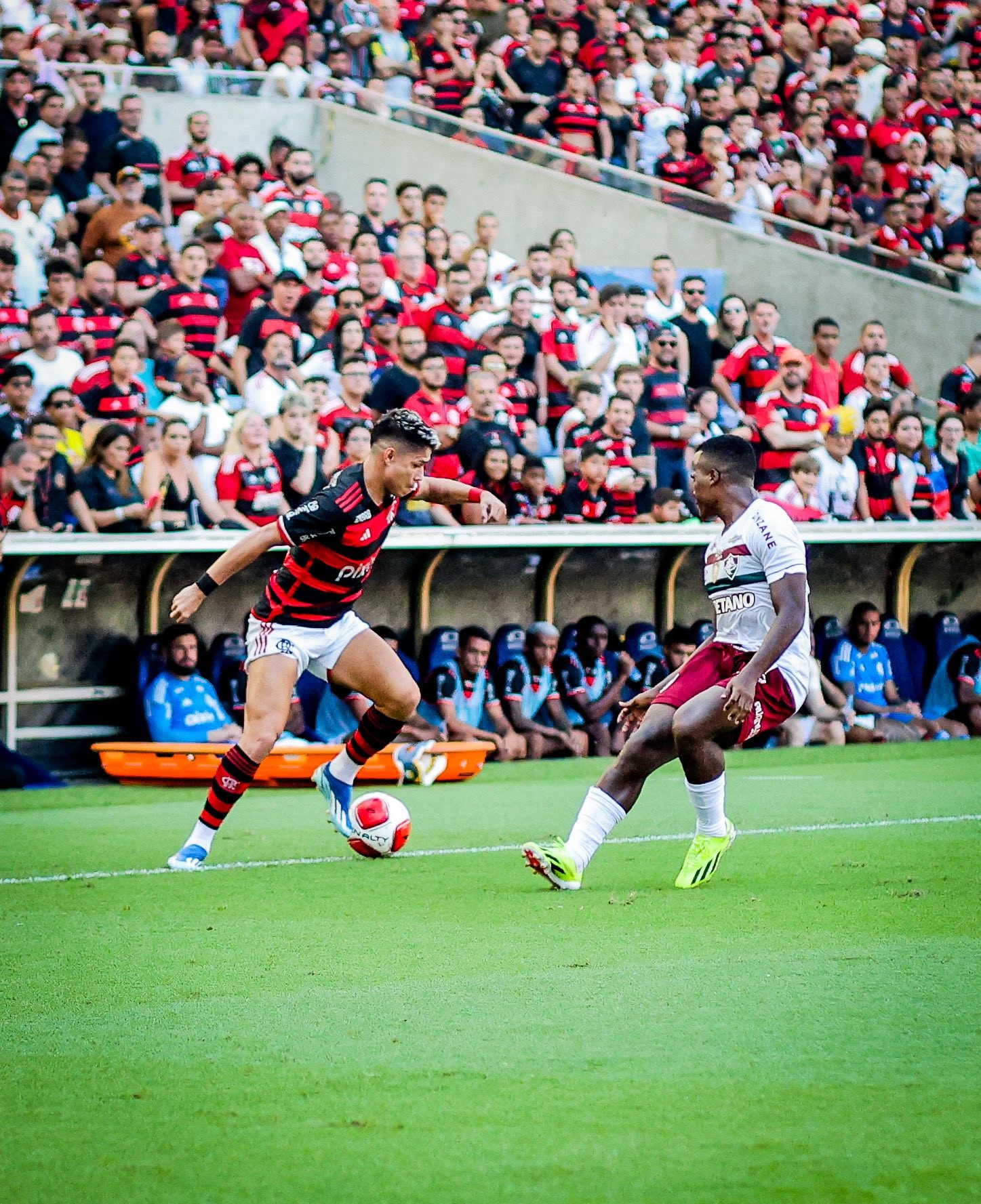 Foi na volta do intervalo que o jogo ganhou seus contornos. As mudanças promovidas por Diniz atrás desestabilizaram a marcação do Fluminense, que ainda passou a ter mais dificuldades para criar na frente diante da postura mais compactada do Flamengo. O rubro-negro abandonou a pressão alta e recuou, apostando em jogadas mais verticais. Deu certo.