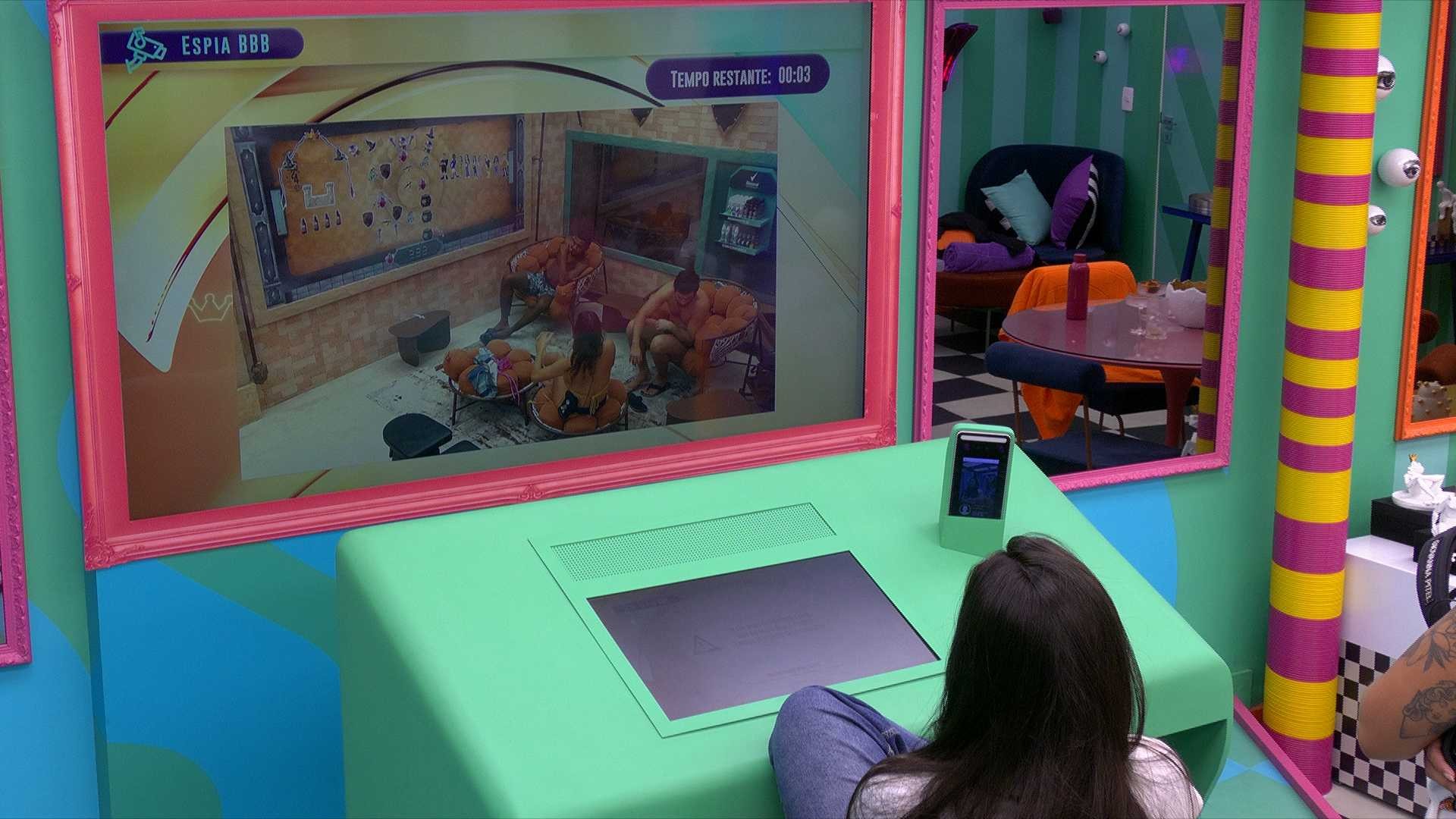 Quando o tempo do Espia BBB acaba, Pitel reage: “Estão tentando botar você no Paredão”. “Ainda bem que você ouviu. Matteus fazendo a mente, o Davi fazendo a mente”, o funkeiro adiciona.
