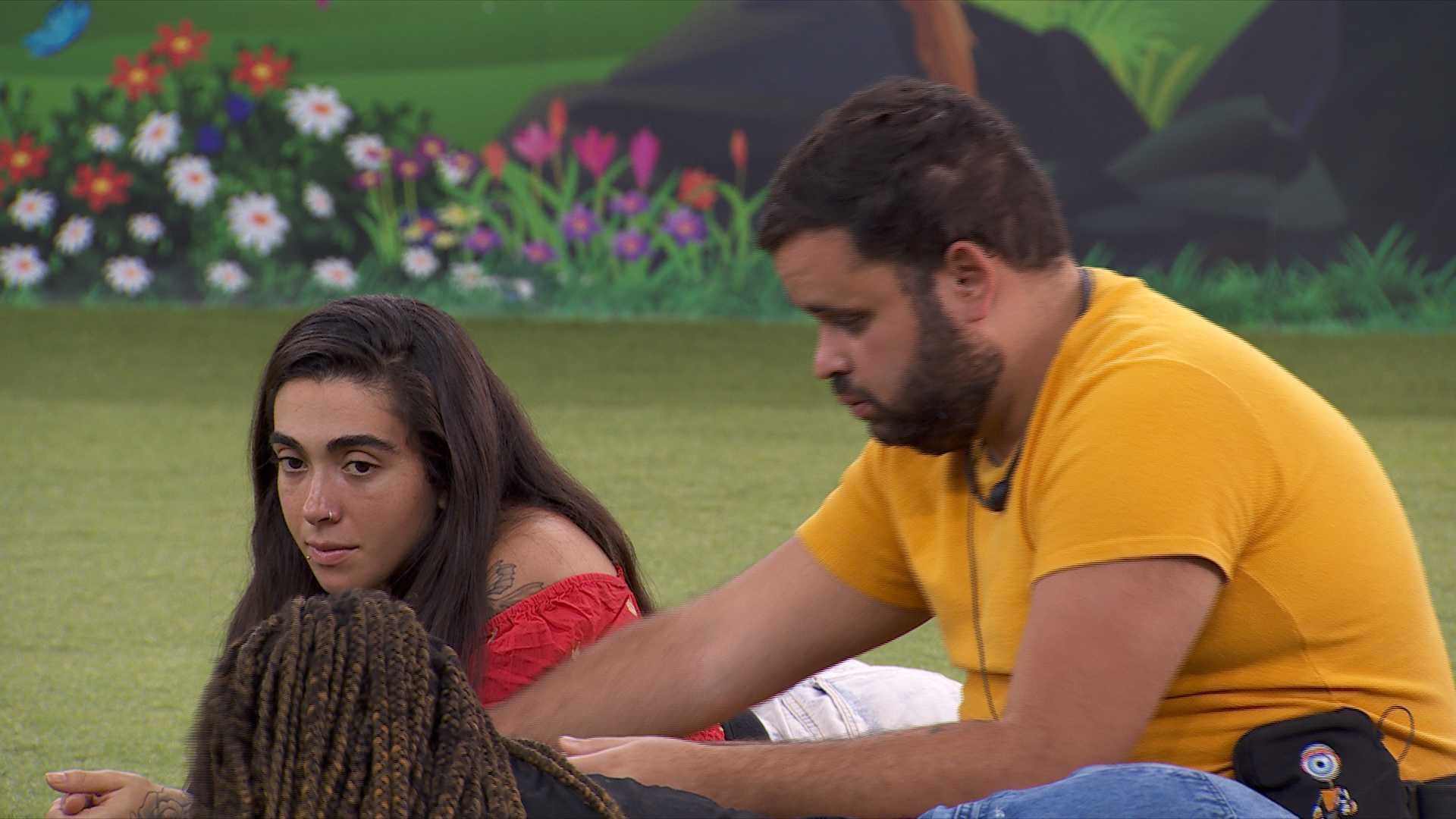 “Salvar a Wanessa dá muito mais peso para o time dele, que é a pessoa que ele joga junto”, diz Pitel. “Lógico, mas entre as 15 opções que tinha para colocar no Paredão ele tinha que botar a Isabelle?”, questiona Giovanna. “Por que não colocou a Deniziane que estava com a pulseira também?”, pergunta a assistente social.