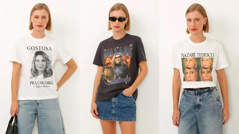 A parceria com a Globo reforça memes feitos com as vilãs das obras, como “Alucicrazy” e “Gostosa pra caramba” de Nazaré Tedesco. A frase “Infernooooo“, de Carminha, também ganhou uma camiseta própria.