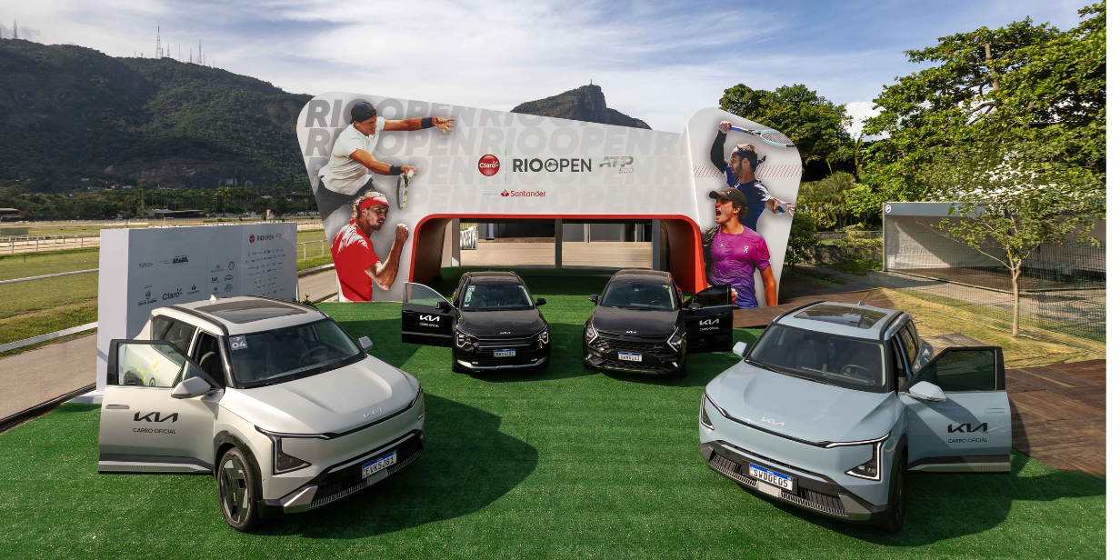 A Kia Brasil decidiu apostar nos carros elétricos para ativar o patrocínio à 11ª edição do Rio Open, que acontece até o próximo domingo (23), no Jockey Club Brasileiro, no Rio de Janeiro (RJ). A montadora sul-coreana é responsável pelo transporte oficial dos atletas durante o torneio e realiza essa tarefa com uma frota de dez veículos. Entre os modelos disponibilizados estão os híbridos Stonic, Sportage e Niro, assim como o elétrico EV5.