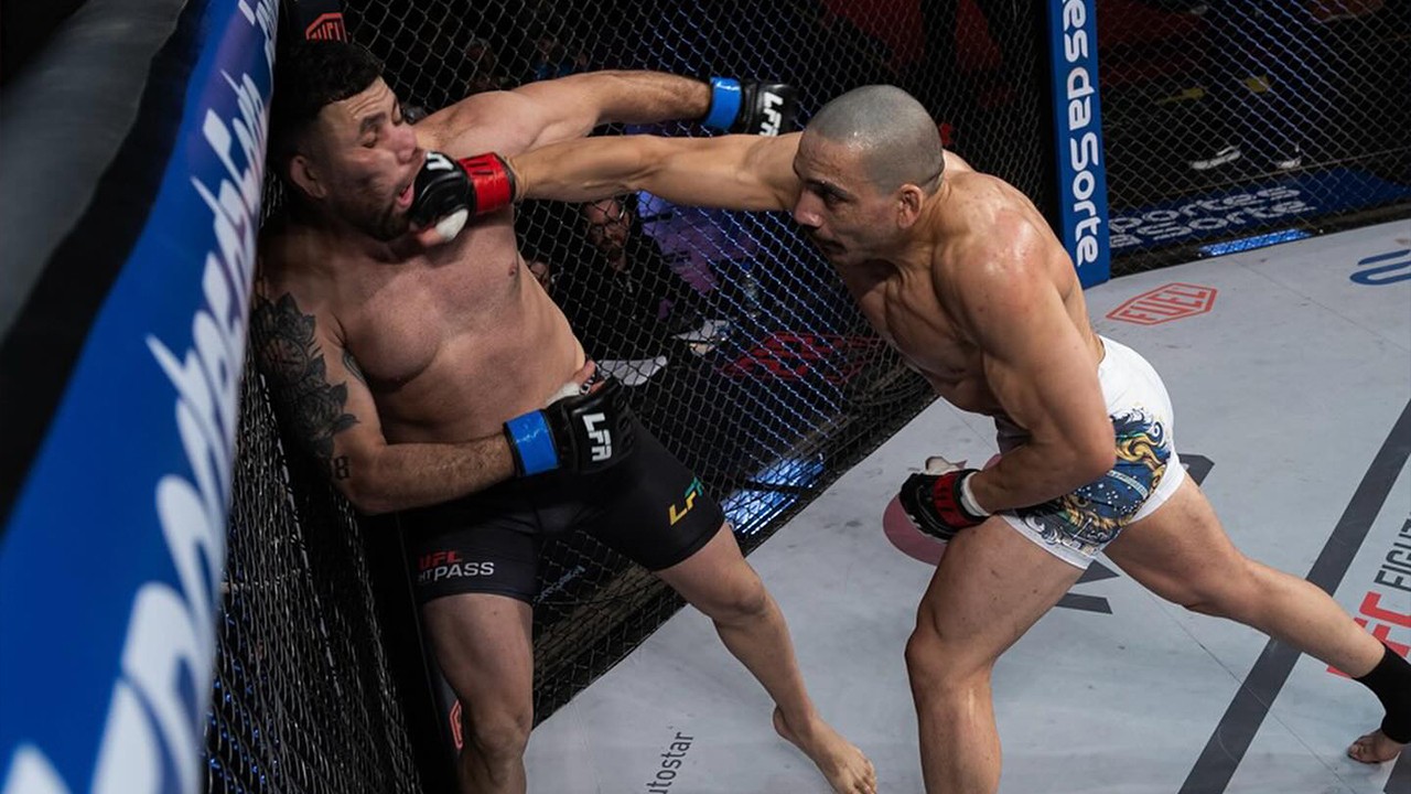 Samuel Dias precisou de menos tempo ainda para superar o paraguaio Renzo Cortti. O brasileiro mandou o oponente ao para o solo e chegou ao nocaute técnico com um ground and pound impiedoso aos 39 segundos de luta.