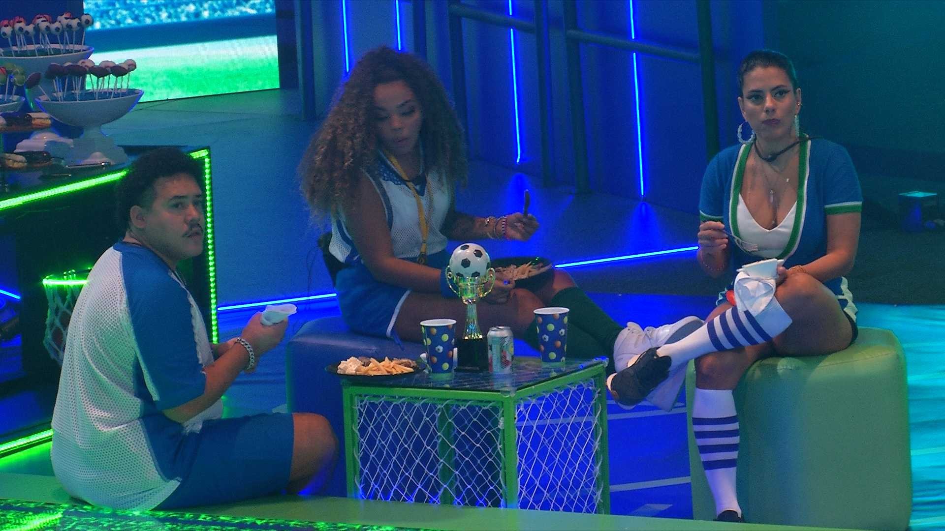 Lucas Henrique afirma: “Não faz isso em lugar nenhum”. Pitel chega e questiona do que os brothers estão falando. A confeiteira afirma: “Do banho de água de coco”. A assistente social, então, diz: “É uma loucura, tá?”.
