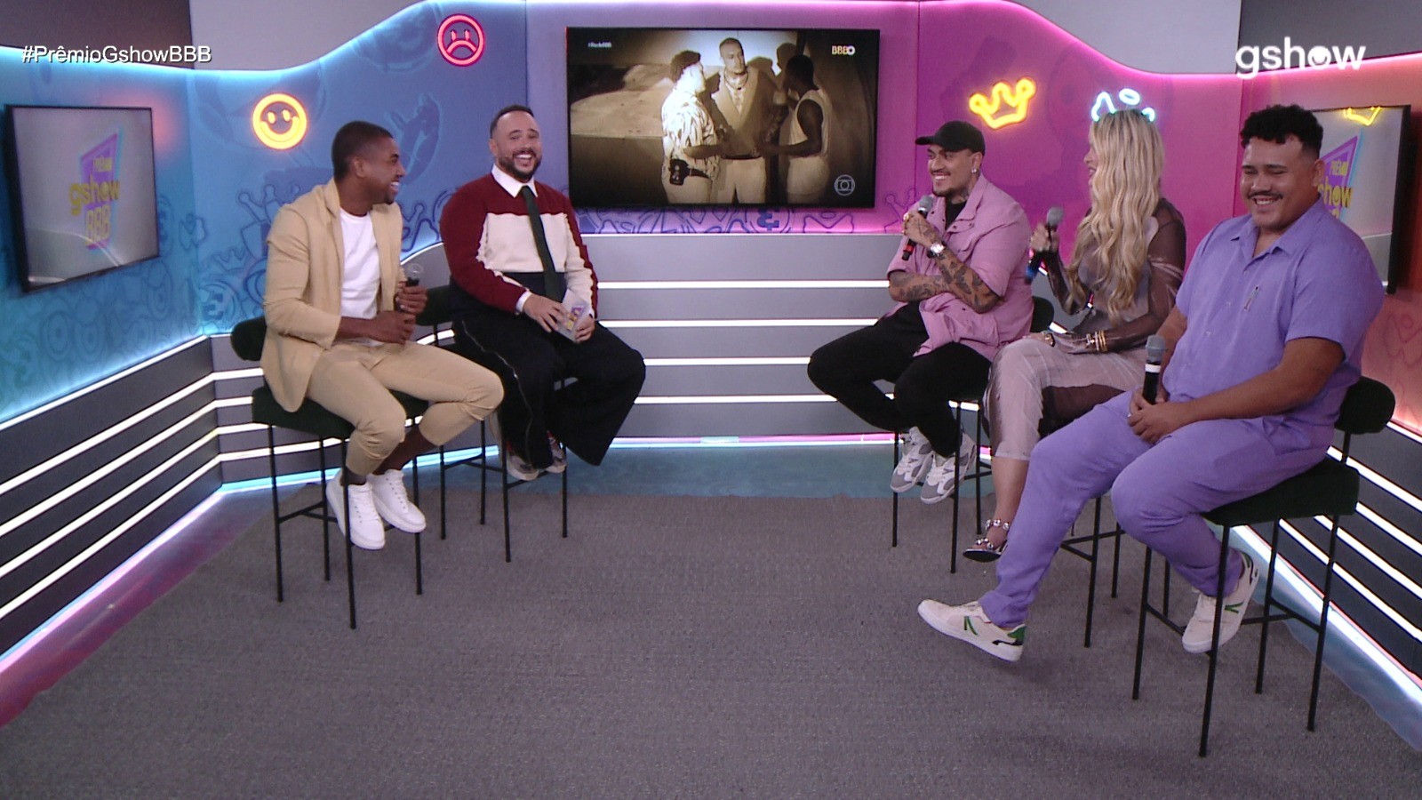 MC Binn questiona: “Que problemas?”. Mas o professor desconversa. “Os problemas!”, afirma Lucas. Davi brinca sobre a situação, e o ex-BBB reage: “Davi…”.