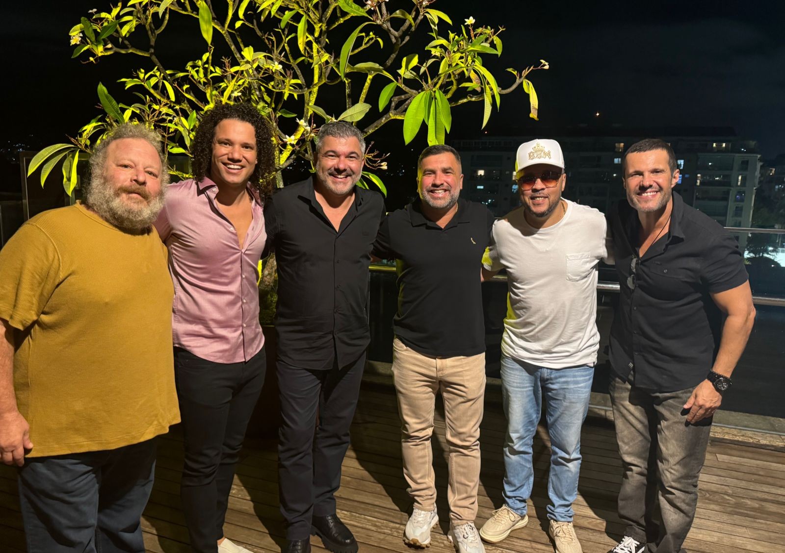 A celebração reuniu famosos como David Brazil, Andrezinho, vocalista do grupo Molejo, os atores Igor Lage, Renato Rabello, Charles Paraventi e Izabel Bicalho em um restaurante do shopping Village Mall, na Barra da Tijuca.