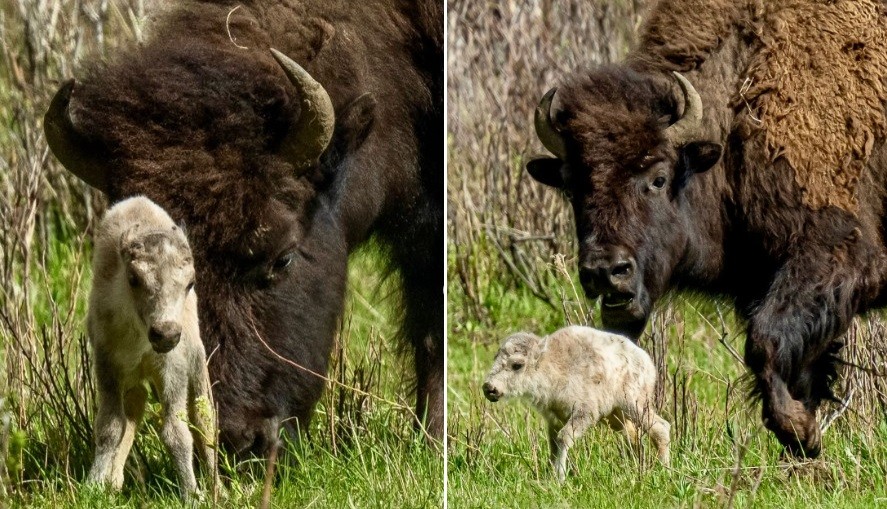 “Foi incrível”, disse Erin ao “USA TODAY”. “Ficamos presos no trânsito e, então, peguei a minha câmera, olhei para trás e vi que na verdade era um filhote de bisão branco que acabara de nascer”, emendou ela.