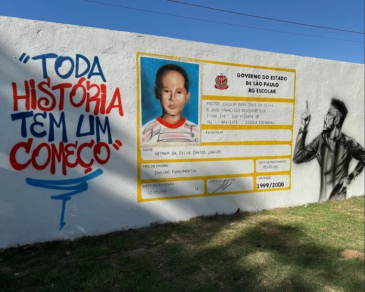 Neymar ganha homenagem em quadra da escola onde estudou em Santos, SP
