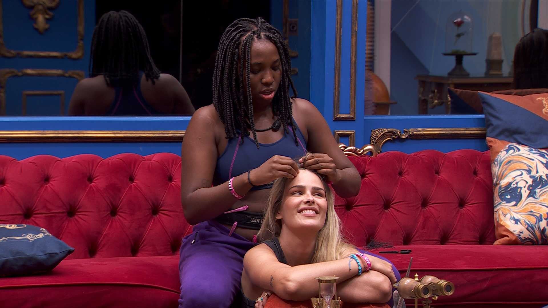 Enquanto faz uma trança no cabelo de Yasmin, Leidy Elin fala sobre sua vida pessoal fora da casa. A trancista revela um hábito íntimo que tinha antes do BBB 24, e conta um apelido curioso que recebeu das amigas.
