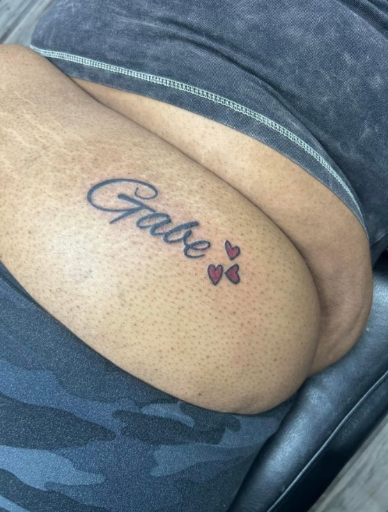 “Gabe” foi tatuado na parte superior de uma nádega, decifraram internautas.