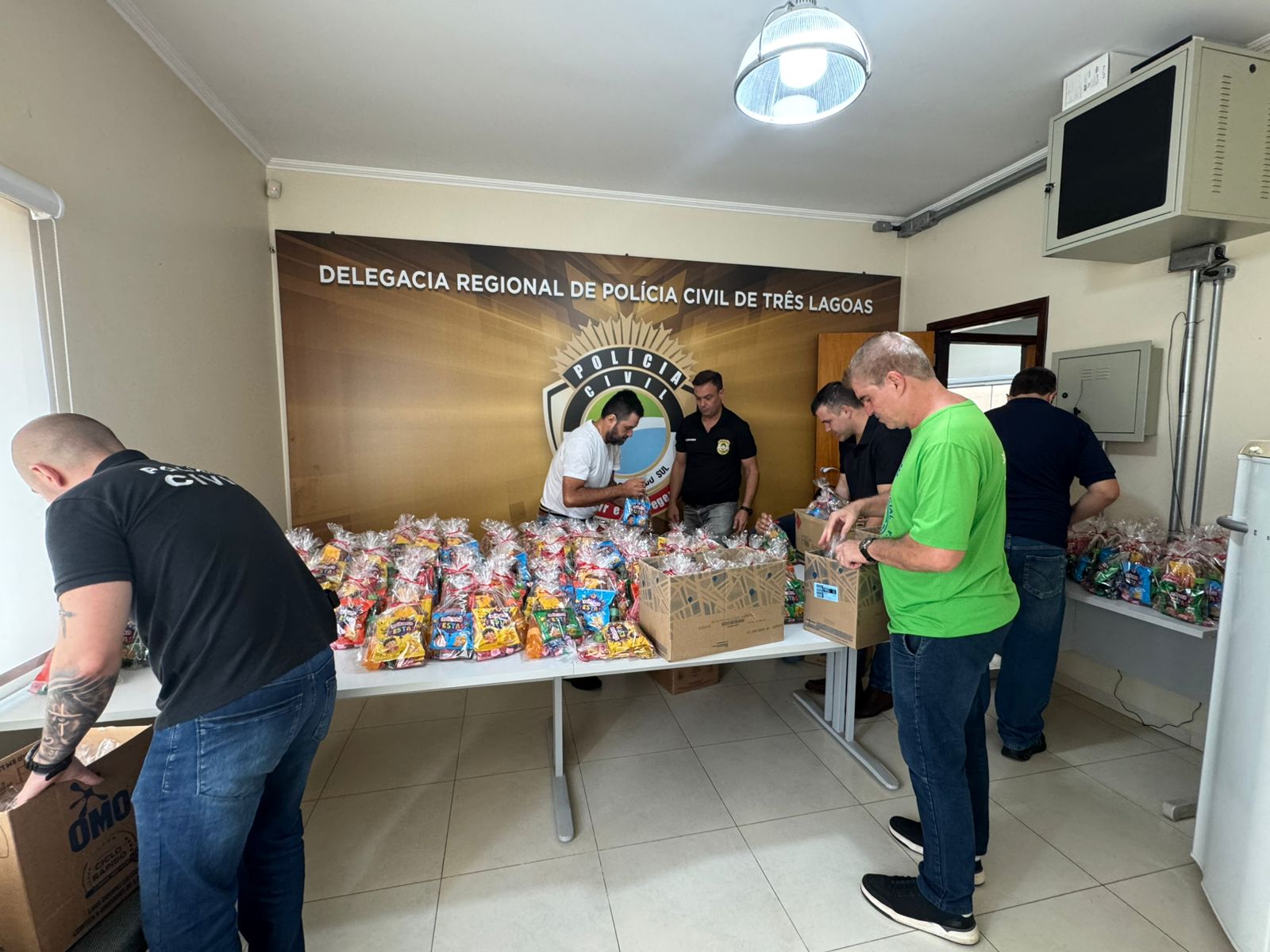 Na tarde desta quarta-feira (16), as Unidades Policiais vinculadas à Delegacia Regional de Polícia de Três Lagoas (Delegacias de Três Lagoas, Água Clara e Selvíria), promoveram a doação de doces para a festa das crianças carentes assistidas pelo projeto social denominado “Ação Social Boa Esperança (ASBE)”.