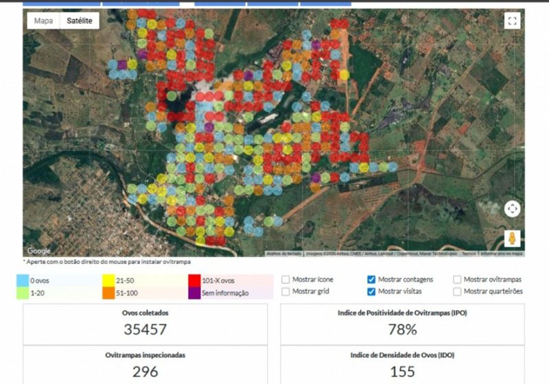 Apesar do cenário favorável nos índices de infestação, os dados obtidos por meio das ovitrampas acendem um sinal de alerta. Foram coletados mais de 35 mil ovos do mosquito nas residências, número superior ao registrado no mesmo período de 2025, quando foram recolhidos cerca de 29 mil ovos. O resultado indica um alto risco de aumento dos casos de dengue e chikungunya nos próximos meses.