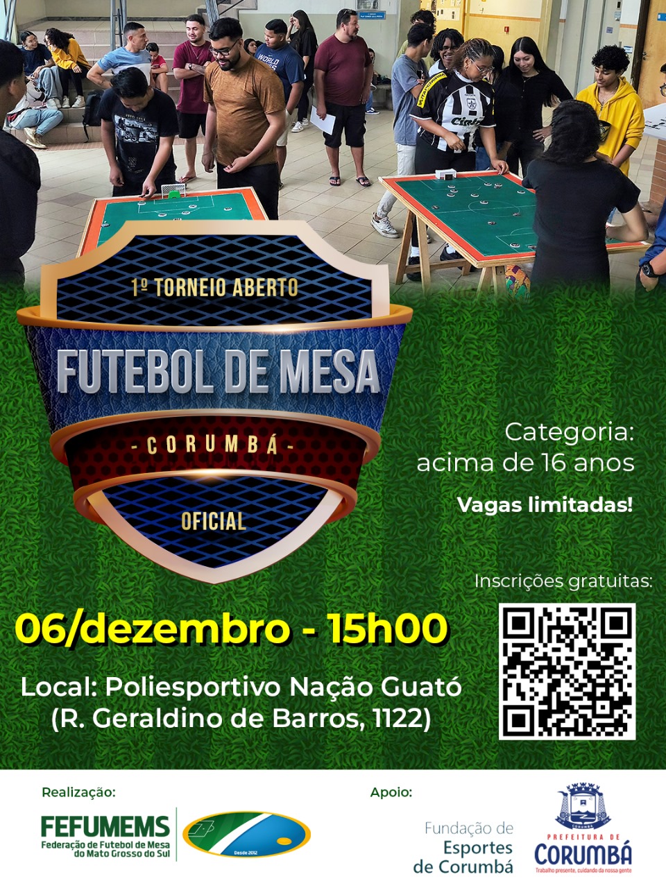 Corumbá vai sediar, pela primeira vez, um campeonato oficial de futebol de mesa. O 1° Torneio Aberto de Corumbá será realizado no dia 06 de dezembro, reunindo competidores de diferentes municípios em um evento inédito na cidade.
