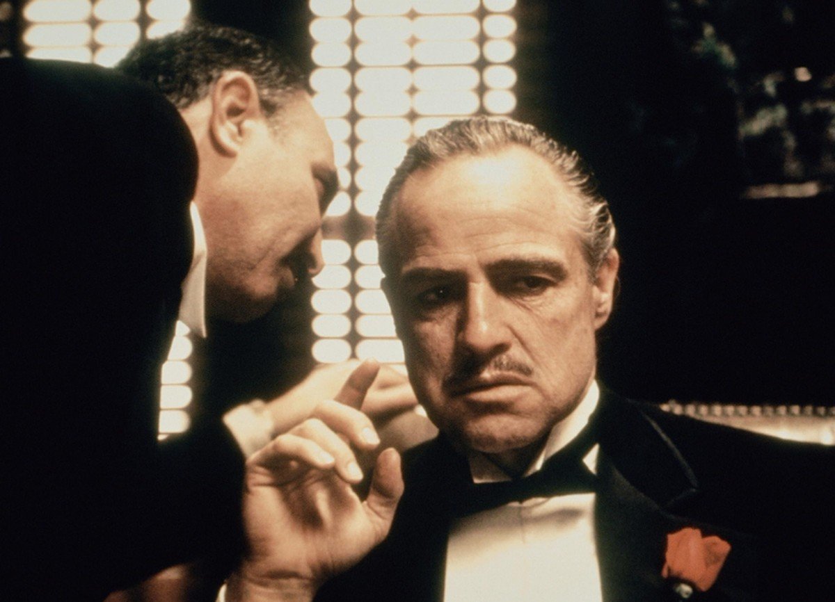 Marlon Brando é o chefe de máfia Don Vito Corleone em O Poderoso Chefão