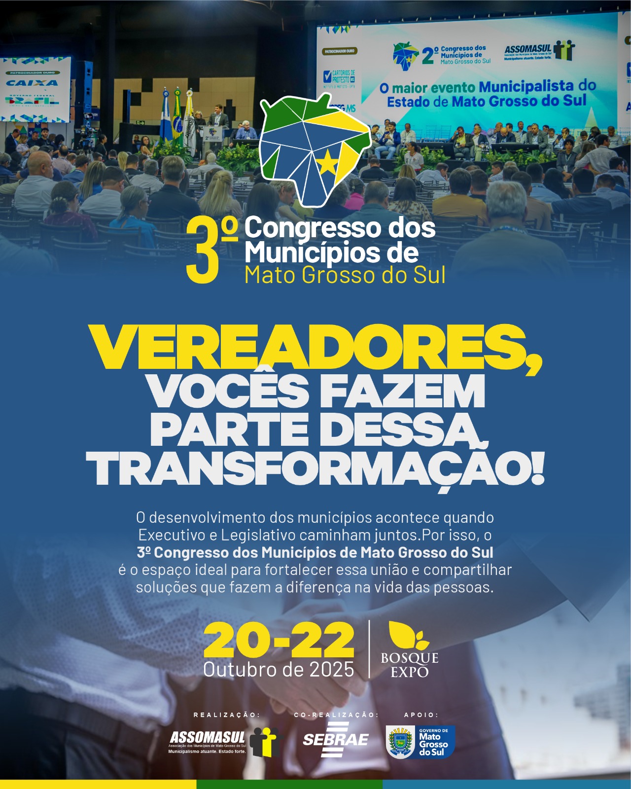 O 3º Congresso dos Municípios de Mato Grosso do Sul, que será realizado nos dias 20, 21 e 22 de outubro, no Bosque Expo, em Campo Grande, destaca o papel essencial dos vereadores e vereadoras na construção de políticas públicas eficientes e no fortalecimento do municipalismo.