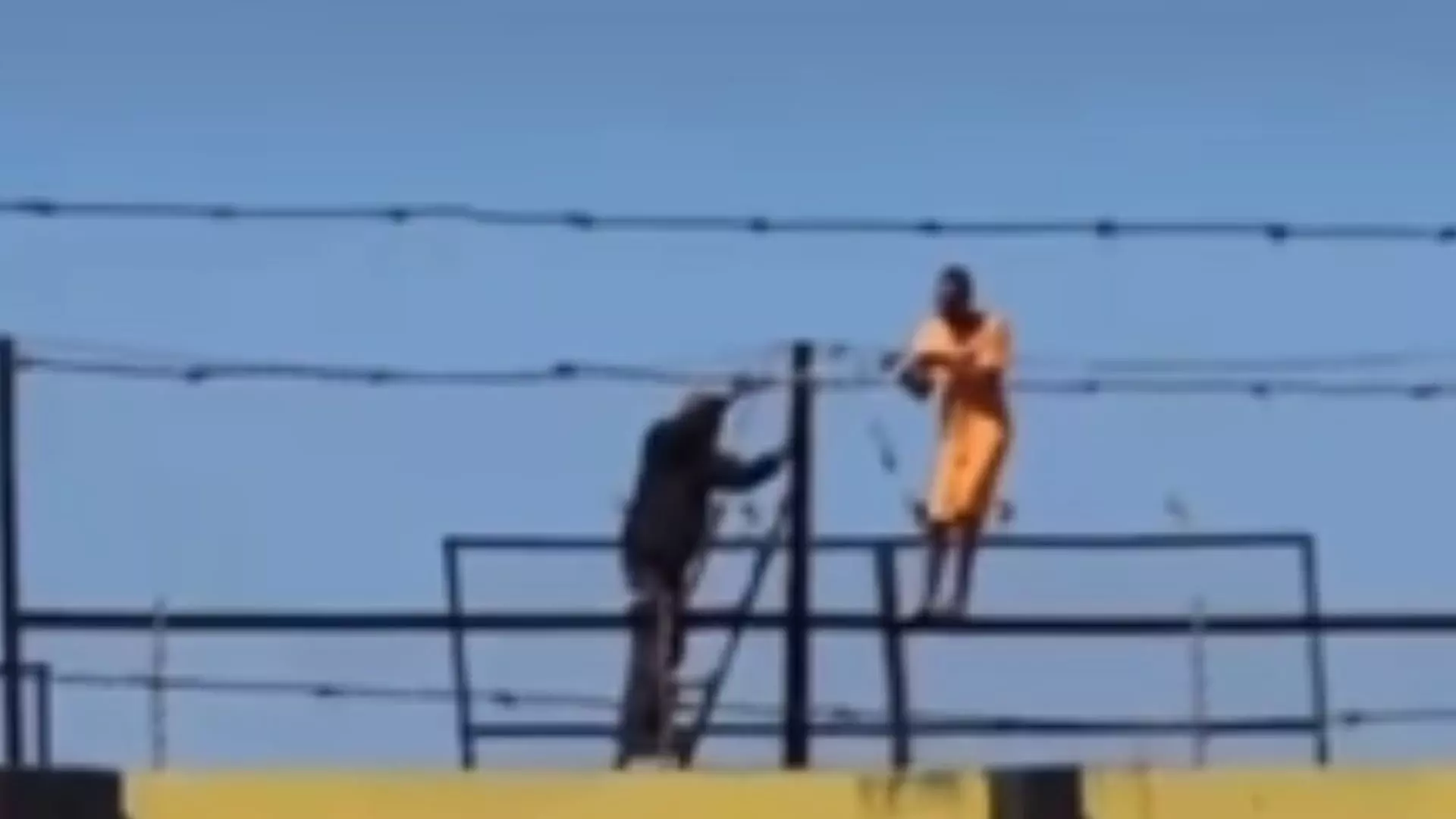 No vídeo gravado por uma pessoa que passava pelo local, é possível ver o interno na grade do presídio. Diante da situação, os policiais penais se mobilizaram na tentativa de contê-lo. Assim, com uma escada, um dos policiais conseguiu alcançá-lo.