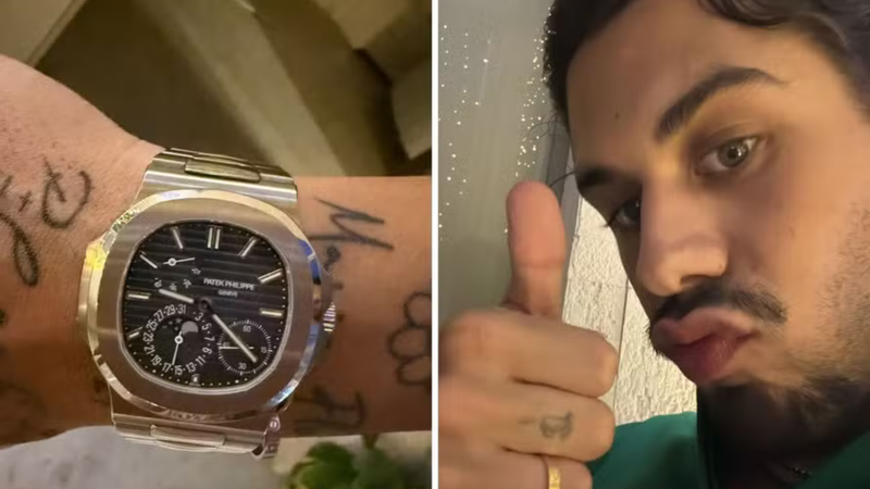 Virginia Fonseca surpreendeu Zé Felipe ao presenteá-lo com um luxuoso relógio Patek Philippe Nautilus 5712, avaliado em R$ 936 mil. “Presente da minha gata. Te amo. Agora só arrumar a hora”, brincou o cantor ao exibir o item nesta quinta-feira (21). O modelo é símbolo de status entre celebridades como Lionel Messi, Ed Sheeran e Leonardo DiCaprio.